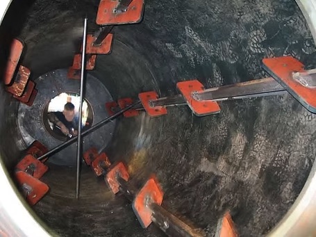 El interior del cilindro está forrado con planchas de goma acero de caucho antidesgaste de alta resistencia a la abrasión. Estas planchas de goma acero son intercambiables por lo que protegen al cilindro del desgaste. Su interior está equipado por barras y paletas de avance y extracción del material, fabricadas en acero antidesgaste de 400 brimers.
